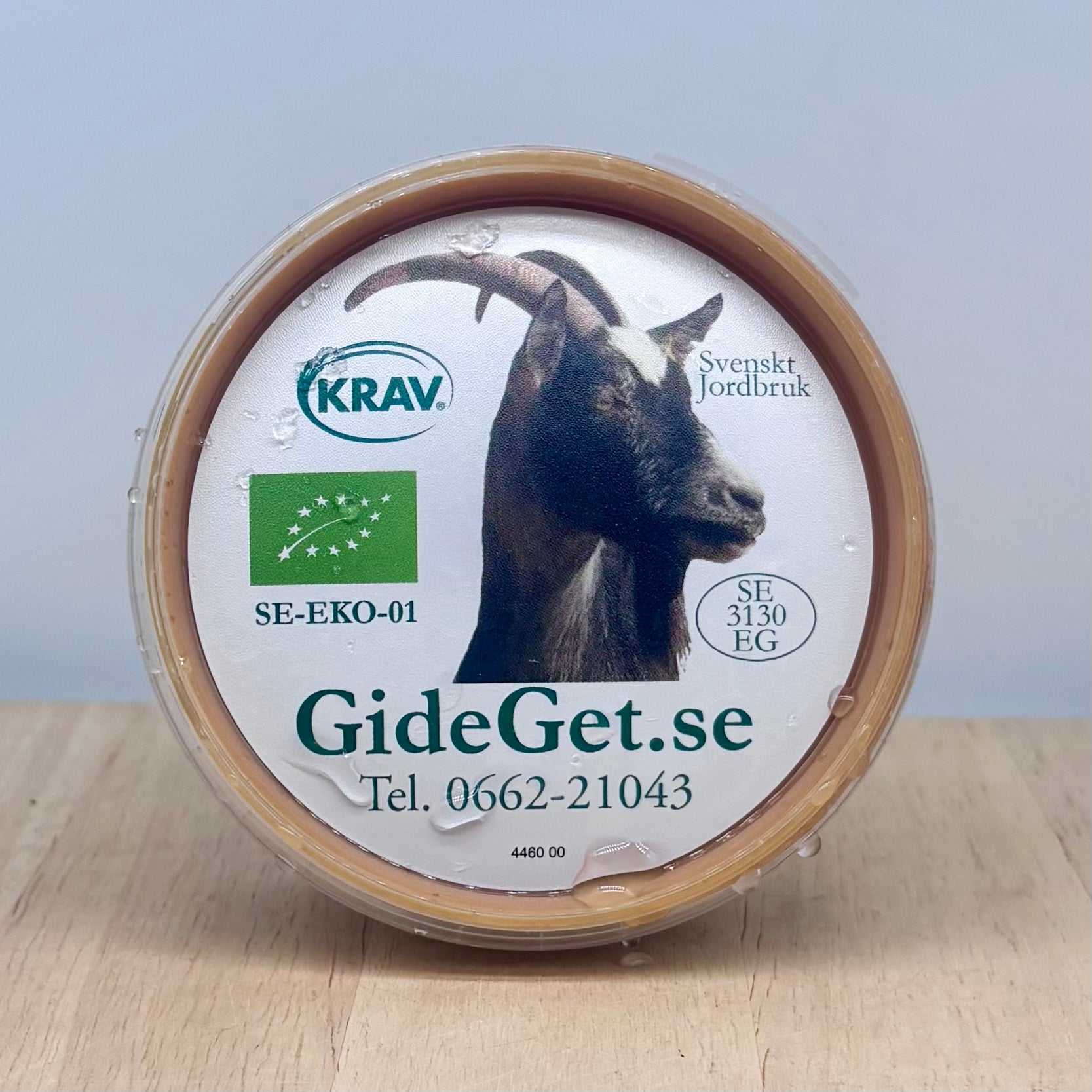 KRAV-märkt getmese bredbar 200g från Gide Get i Trehörningsjö. Traditionellt äter vi getmese på tunnbröd med vit getost. Getmese är karamelliserad vassle, en utmärkt smakhöjare i tex vilt och svampsåser.