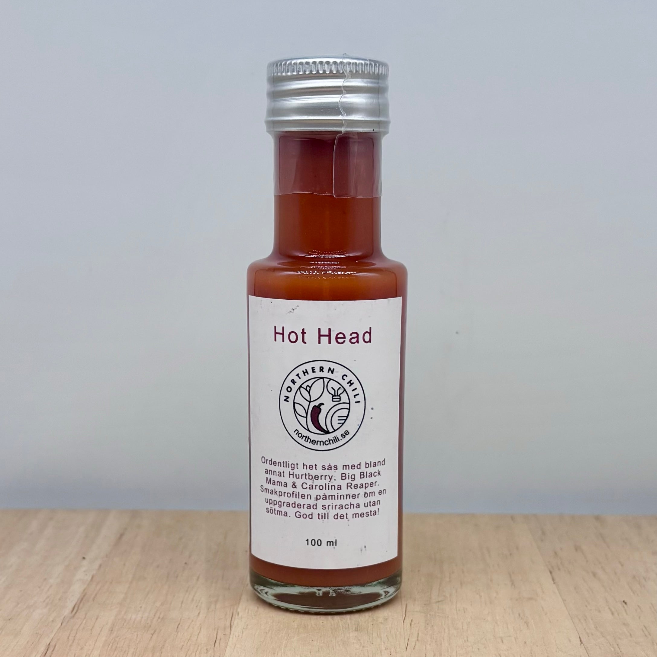 Chilisås Hot Head från Northern Chili i Umeå. Hot head är en ordentligt het sås med bland annat Hurtberry, Big Black Mama och Carolina Reaper. Smakprofilen påminner om en uppgraderad sriracha men utan sötma. God till det mesta! 100ml