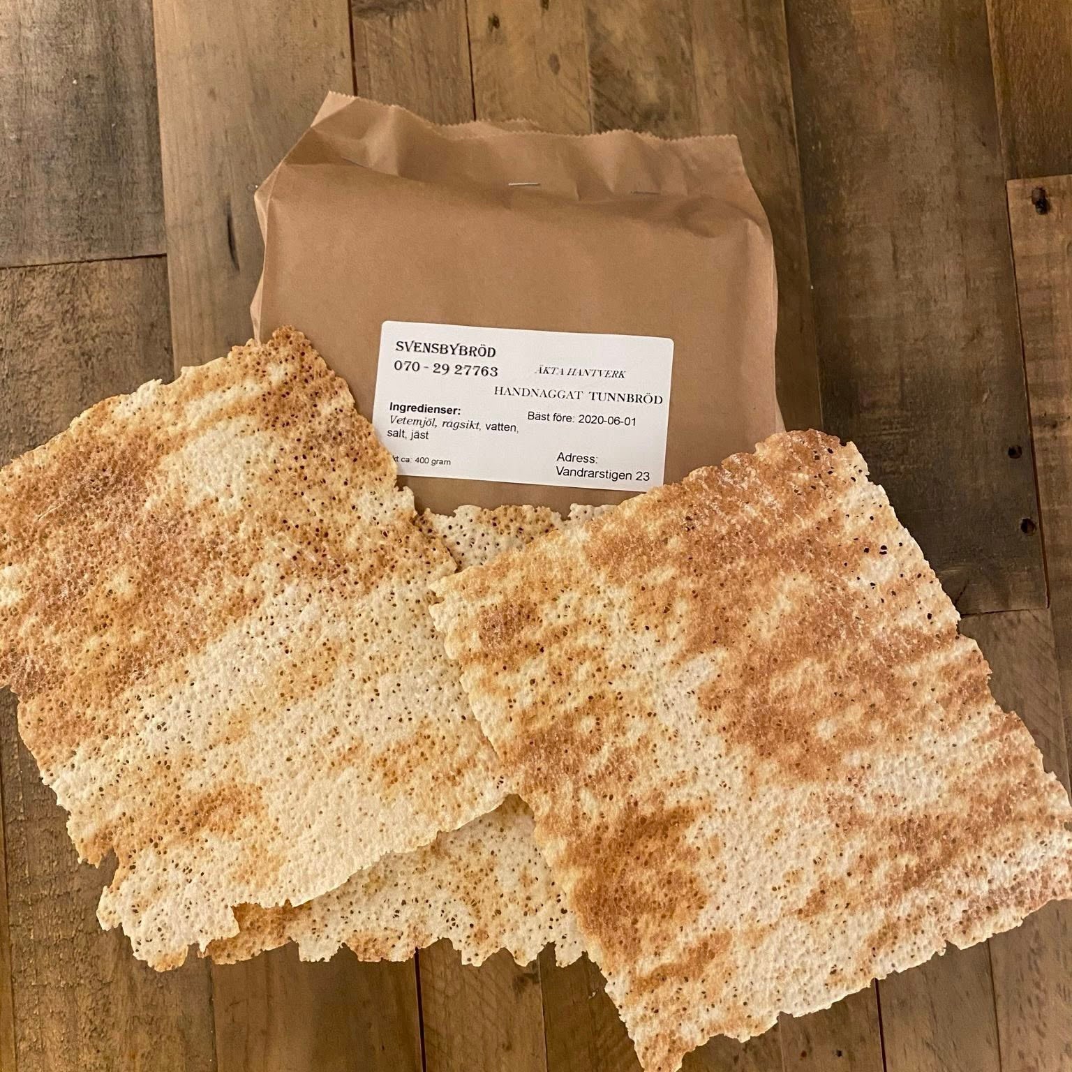 Handnaggat tunnbröd från Svensbybröd. 400g.