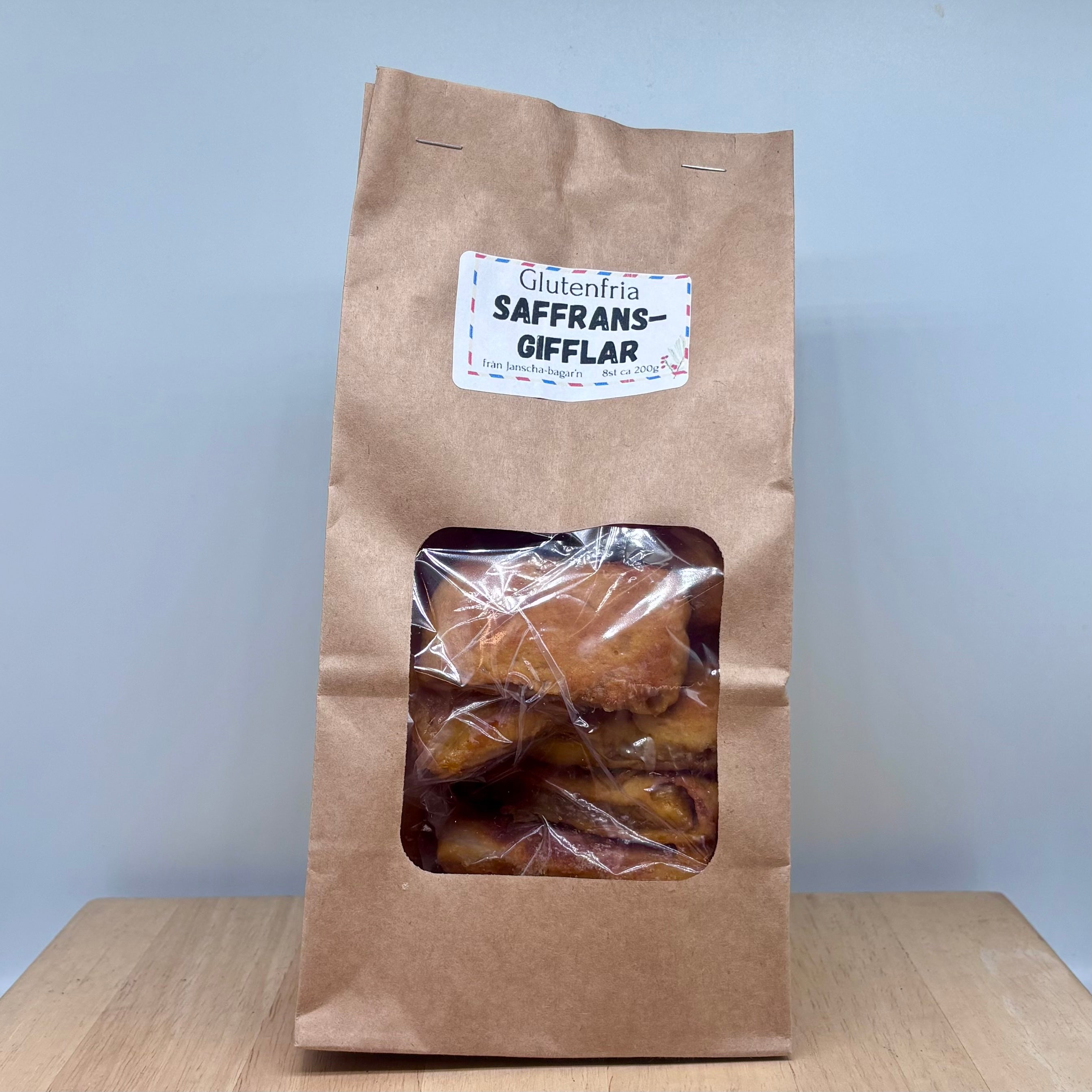 Glutenfria saffransgifflar från Janscha-bagar'n i Långträsk, Sjulsmark utanför Piteå.