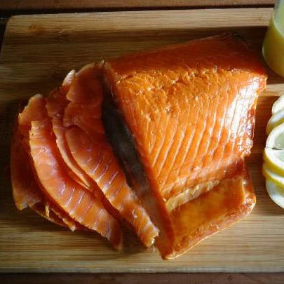 Kallrökt regnbågsfilé på bit från Guldhavens Pelagiska i Kalix. Odlad i Jävre, förädlad i Kalix.