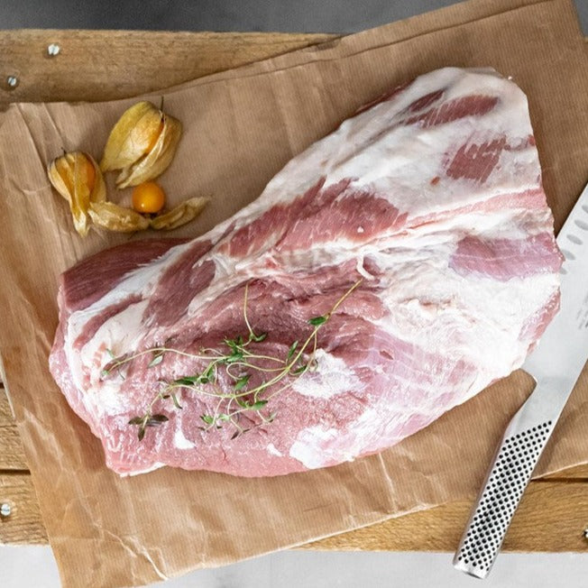 Hel karré från Järvtjärns utegrisar i Burträsk. Slaktad och styckad i Burträsk. Hel karré är perfekt till pulled pork.