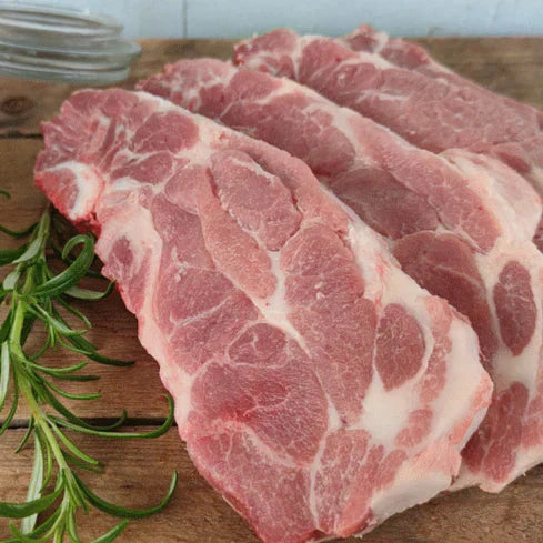 Karrékotletter 2 skivor från Järvtjärns utegrisar i Burträsk. Slaktad och styckad i Burträsk.