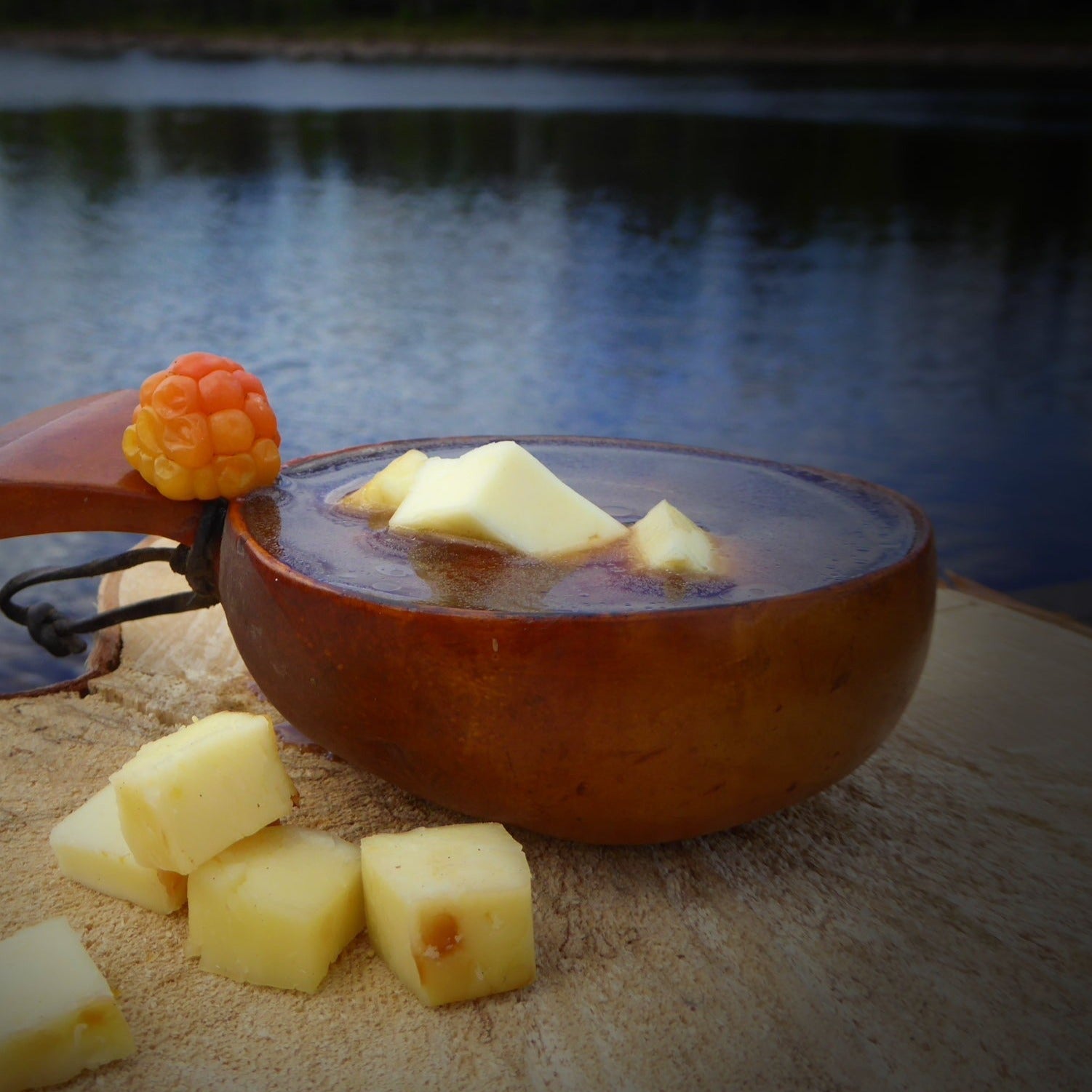 Älskad kaffeost och lappländsk grillost i ett. Ej saltad. Marinera, grilla, steka, i sallad, till efterrätter, i kaffet, i whiskeyn eller marineras i likör. Säljes fryst.