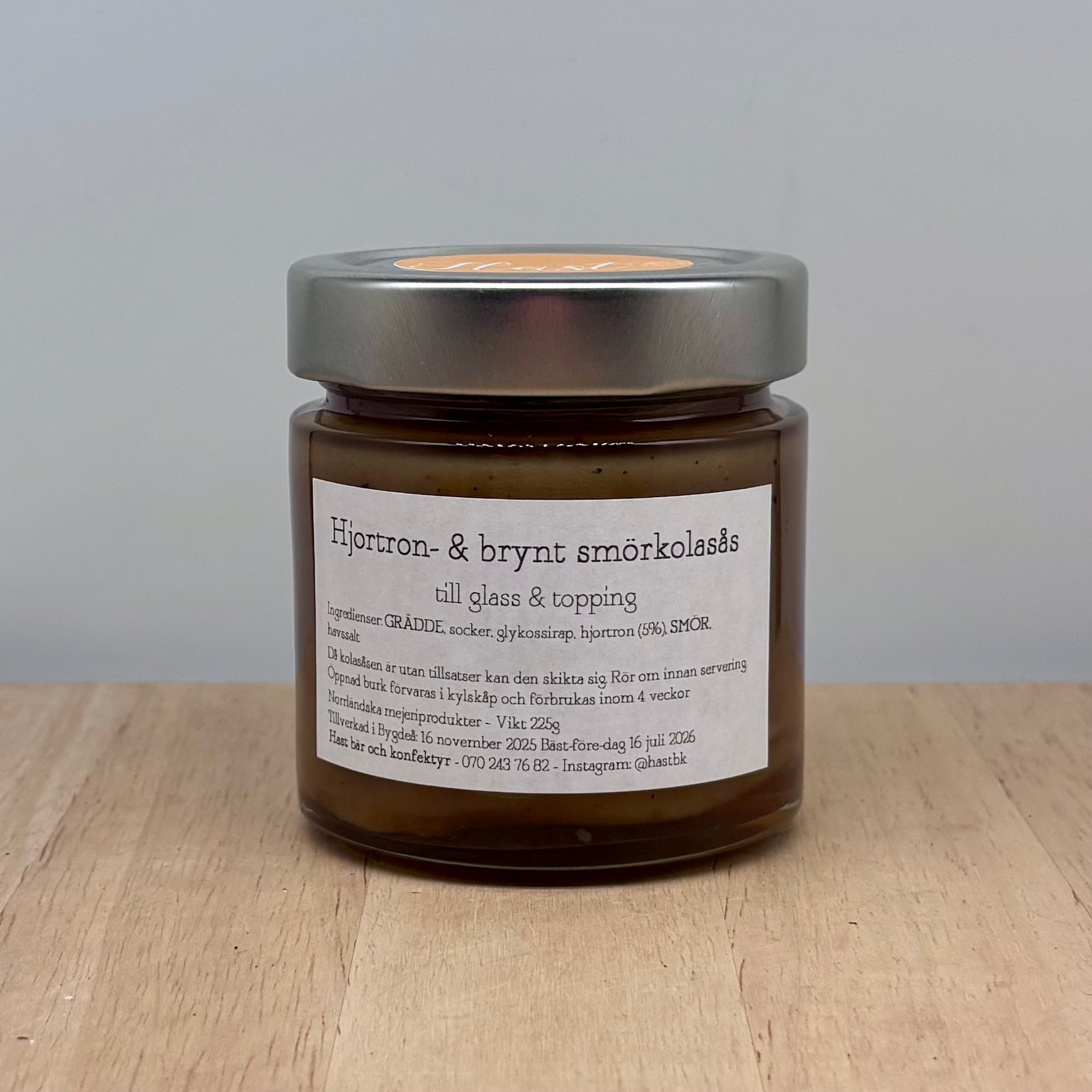 Kolasås på äkta ingredienser med smak av brynt smör och hjortron från Hast bär och konfektyr i Bygdeå. 225g